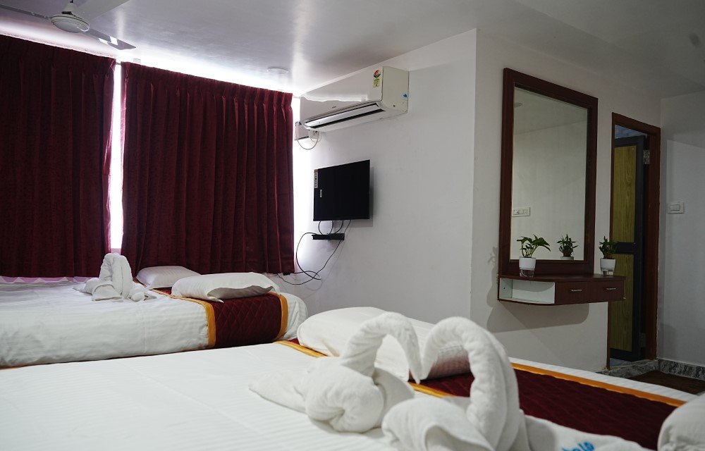 Stepping into the Family Room at Hotel Sea Tides offers a calm and practical space designed for travelers who value comfort, simplicity, and ease of stay while exploring Mahabalipuram, Tamil Nadu. This room category is thoughtfully arranged to suit guests who spend their day moving between beaches, heritage sites, work commitments, or nearby coastal towns, and prefer returning to a clean, well-maintained room that feels reassuring rather than overwhelming. The atmosphere is relaxed and grounded, with a layout that allows easy movement, natural airflow, and balanced lighting that adapts well from daytime brightness to a softer evening tone. The air conditioning provides consistent relief from the coastal humidity, helping guests rest comfortably after long hours outdoors. Textures within the room lean toward durability and comfort, making it suitable for both short stays and longer visits without feeling impersonal. The room does not attempt to impress with unnecessary elements; instead, it focuses on what genuinely matters to everyday travelers—rest, privacy, and usability. Windows are positioned to allow natural light while maintaining discretion, and the overall sound environment supports quiet rest, especially after busy travel days. Whether you are visiting Mahabalipuram for its historic shore temples, business meetings, or a simple seaside break, this room aligns well with practical travel needs. Guests often appreciate how the room feels easy to settle into, without any pressure to adapt or adjust. It is a space meant to support your routine, whether that includes early morning departures, late evening returns, or peaceful downtime between plans. The Family Room reflects a balance between affordability and comfort, staying honest to its purpose while fitting naturally into the surroundings of the region.